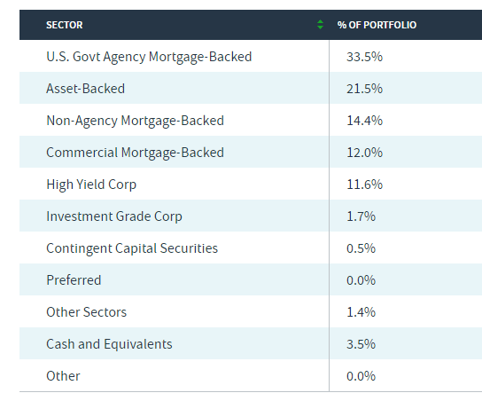 Note : l’allocation MBS hors agence était de 33,7 %. Plusieurs fonds Pimco ont également des allocations élevées dans cette classe d’actifs.