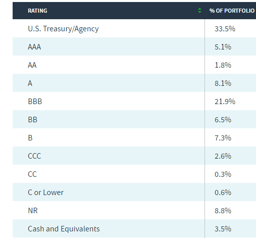 Le BIT est plus spéculatif avec environ 30 % d’obligations de qualité investissement et est un peu moins corrélé avec les fonds Pimco.
