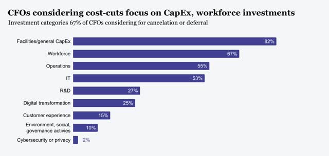 (Données tirées de l’enquête de PwC CFO Pulse Survey, 13 avril 2020, extraites de CIO Dive)