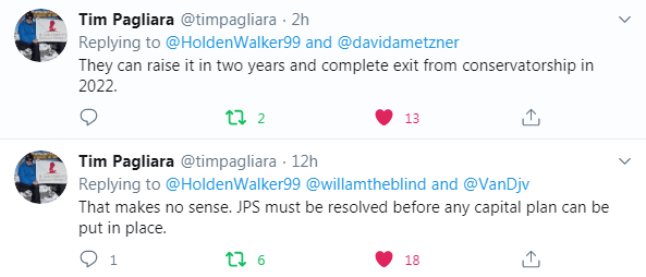 En tant qu’actionnaire privilégié, les sociétés ne peuvent pas lever de fonds par le biais d’une offre d’actions tant que les réclamations pour rupture de contrat devant le tribunal de Lamberth ne sont pas réglées. Si vous regardez le calendrier de l’ACG, cela met les actionnaires privilégiés aux commandes dès cinq mois, avec un règlement attendu dans les huit mois. On s’attend à ce qu’ils se convertissent en commun. Il n’est pas logique qu’ils perçoivent des dividendes en espèces sur leurs actions existantes. Il s’agit d’une recapitalisation. Si vous regardez la règle du capital, il n’est pas possible que les directions de Fannie et Freddie dépensent de l’argent pour payer les actions privilégiées existantes en un seul dividende alors qu’elles peuvent conserver cet argent au niveau de l’entreprise afin de pouvoir se payer de plus gros bonus plus tôt.