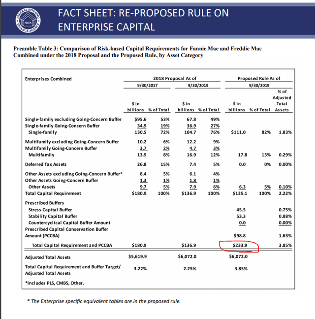 Il n’est pas surprenant que la FHFA fixe les exigences de capital à 233,9 milliards de dollars :