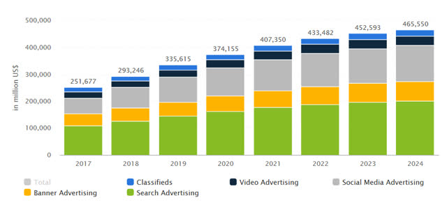 Il convient également de noter que le niveau de concurrence augmente également. Nous assistons actuellement à des efforts concertés sur ce marché de la part de Snap (NYSE:SNAP), Pinterest (NYSE:PINS), Twitter (NYSE:TWTR) et de nombreux autres.