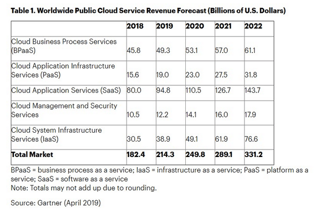 L’un des problèmes pour les analystes qui tentent d’estimer les parts de marché relatives dans ce segment est que les participants ont tendance à agréger les chiffres de vente de leurs différentes offres de produits, même si ces produits peuvent appartenir à différents segments du marché du Cloud (par exemple, Google combine ses revenus pour Google Cloud Platform et GSuite, bien que l’un appartienne au segment IaaS et l’autre au segment PaaS).