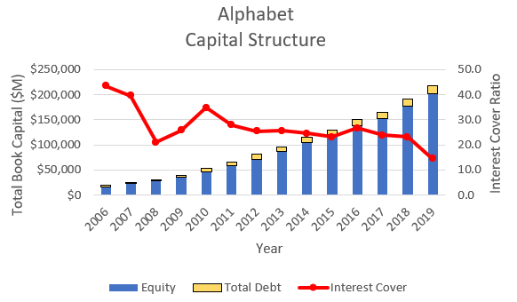 Fin 2019, Alphabet disposait de 109 milliards de dollars de liquidités et de titres négociables. Sur la base de ce solde et étant donné qu’aucune dette n’est à refinancer cette année – Je ne pense pas qu’Alphabet aura besoin d’apporter des ajustements à sa structure de capital cette année.