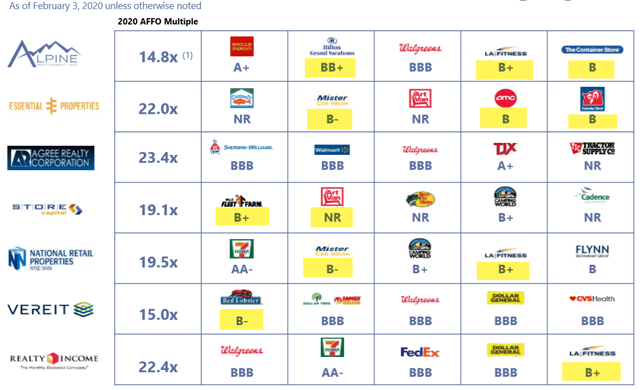 Il est important de reconnaître que toutes les FPI de Net Lease ne sont pas les mêmes et, pendant cette pandémie COVID-19, les investisseurs devraient être très attentifs aux sources de revenus sous-jacentes. Comme je l’ai expliqué dans le récent article,
