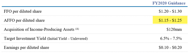 PINE a récemment déclaré un dividende trimestriel de 0,20 $ par action payable le Le 31 mars. TCela se traduit par un dividende annuel de 0,80 dollar par action. Comme indiqué ci-dessus, les orientations « précédentes » (avant COVID-19) étaient des fonds provenant de l’exploitation ajustés annuels par action de 1,20 $ au point médian ou un taux de distribution de 67 %.