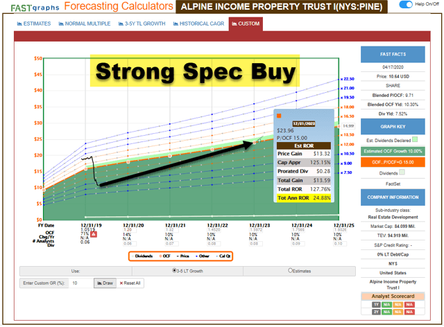 - Gestion externe : J’ai lu le 10-K et la section sur les conflits d’intérêts vaut la peine d’être lue (page 24). Je reconnais que PINE est trop petit pour rémunérer une équipe de gestion dédiée, mais il est important d’étudier attentivement les dispositions relatives aux commissions d’encouragement (c’est une structure de commissions d’encouragement avec un filigrane),