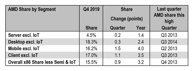 Le fait que les parts d’AMD aient augmenté dans tous les segments et qu’ils continuent à lancer des produits comme leurs processeurs de serveur Epyc qui représentent de réelles menaces pour la concurrence, montre la force actuelle d’AMD.