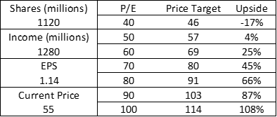 Pour parvenir à un objectif de prix pour la DMLA, j’ai utilisé des multiples P/E. Vous pouvez voir ci-dessous les hypothèses ainsi que les différents objectifs de prix.