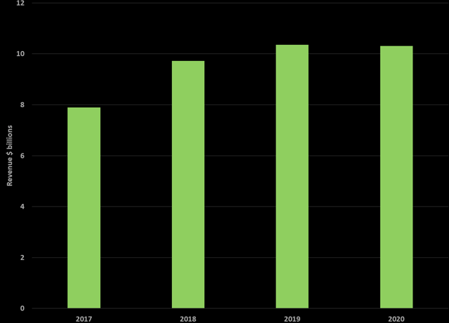 L’une des mesures qui a retenu notre attention est le chiffre d’affaires. Nous nous attendions à une pression qui s’est accrue en mars, mais il a été difficile de l’affaiblir. Nous nous attendions à des recettes de 10,7 à 11 milliards de dollars. Ils ont atteint 10,31 milliards de dollars, ce qui ne correspond pas à nos attentes et représente une baisse de 0,5% par rapport au premier trimestre de l’année dernière :