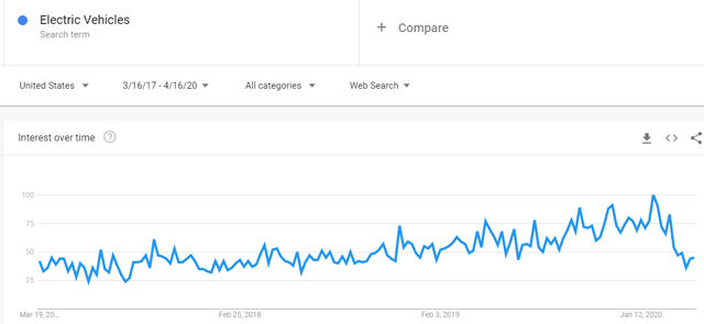 Il est intéressant de noter que le volume de recherche pour « Véhicules électriques » a également baissé de plus de 50 % cette année :