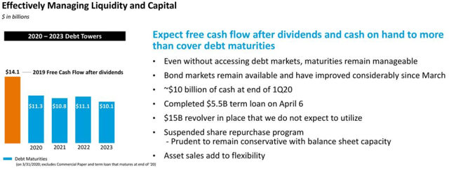 Le FCF est en baisse de 34 % par rapport à l’année précédente et le dividende versé est supérieur à celui du trimestre précédent. Et comme on peut le constater, le FCF a à peine couvert le dividende au premier trimestre. Ces résultats ne donnent évidemment pas une bonne image. Cependant, il existe des moyens pour l’entreprise de mieux gérer ses dépenses tant que l’incertitude COVID-19 persiste (par exemple, la direction a déjà fait part de ses plans de réduction des CapEx). En termes simples, les paramètres du FCF sont définitivement étiré mais, à mon avis, les investisseurs ne devraient pas être trop inquiets à ce stade.