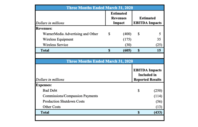 La société a principalement vu les revenus de WarnerMedia affectés par la perte de March Madness au cours du mois de mars. La publicité a atteint un total de 400 millions de dollars, et la société a vu 175 millions de dollars supplémentaires provenant de la vente d’équipements sans fil, mais ces revenus sont faibles en calories, avec une augmentation réelle de 35 millions de dollars de l’EBITDA en ne réalisant pas ces ventes.