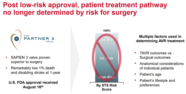 Le système Sapien 3 Valve Replacement de la société a déjà fait des percées majeures sur le marché du remplacement des soupapes grâce à sa sécurité et à son efficacité. L’adoption du TAVR chez les patients présentant une sténose aortique à faible risque atteint maintenant le stade de l’inflexion. Les solides données de l’étude PARTNER 3 ont également mis en évidence de meilleurs résultats cliniques chez les patients présentant une sténose aortique symptomatique grave et un faible risque chirurgical avec les procédures TAVR après deux ans, par rapport à la chirurgie à cœur ouvert.