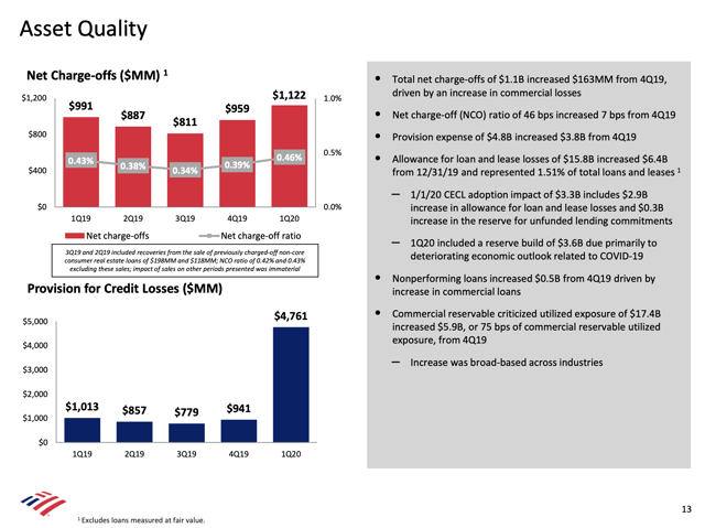 Le principal impact a été la provision pour pertes de crédit, dont une réserve de 3,6 milliards de dollars a été constituée. Au cours des trimestres précédents, la BoA ne prenait que des provisions pour prêts en fonction des imputations réelles du trimestre.