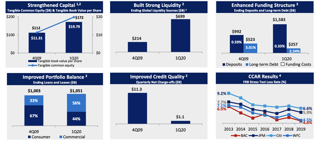 Le principal argument des investisseurs est que les banques font partie de la solution à cette récession. La BoA dispose du capital et des ressources financières nécessaires pour continuer à verser un dividende important et pour revenir rapidement au rachat d’actions lorsque la crise du virus sera terminée.