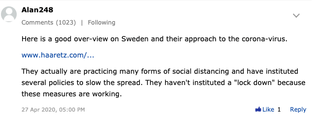 Merci pour le lien, Alan. L’approche plus détendue de la Suède a valu au pays des critiques mitigées.