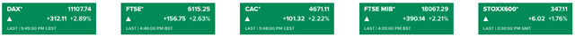 Les actions asiatiques (AAXJ) ont constitué un mélange fermé, tandis que les indices européens (VGK) ont largement servi de toile de fond à la forte performance des États-Unis.