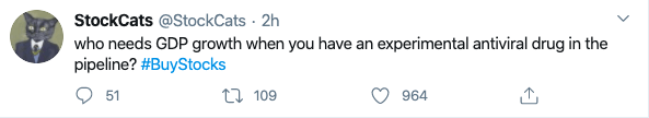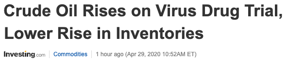 Le gros titre sur Investir.com mis en évidence ci-dessus a retenu mon attention. Si le médicament remdesivir de Gilead (GILD) s’avérait effectivement efficace dans le traitement du virus, cela augurerait en effet d’un retour global au travail et à des schémas normaux. À son tour, l’or noir battu pourrait renouer – voire s’envoler – avec un tel changement.