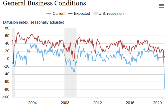 Après les ventes au détail, l’indice manufacturier de l’Empire State a connu des baisses record pour le deuxième mois consécutif. Le pire, c’est que le consensus demandait une baisse à -35, mais l’activité a chuté à un niveau record de -78,2, dépassant même certaines des pires estimations