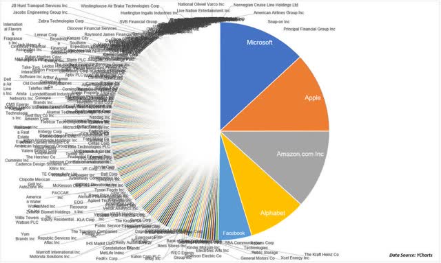 9. Poids de la capitalisation boursière : Michael Batnick chez Ritholtz a mis à jour son populaire « crime graphique », qui affiche le poids de certaines entreprises dans le S&P 500. Les 5 plus grands noms ont un poids cumulé égal aux 350 derniers. Si les cinq leaders du marché sont répartis entre les secteurs des technologies de l’information et de la communication, ils se situent en gros dans le domaine des jeux technologiques grand public, les chemins de fer de notre époque, à plus d’un titre.