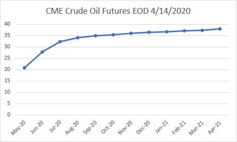 Cela signifie-t-il que les marchés pétroliers sont en contango ? Si l’on considère que le prix à terme à un mois est de 20,82 alors que les prix au comptant ont clôturé à 20,11, c’est peut-être le cas. Et ce n’est que le contact le plus court. Avec un écart de 12 $ entre le spot et 12 mois, il est tentant et probablement approprié d’appeler ce marché contango.