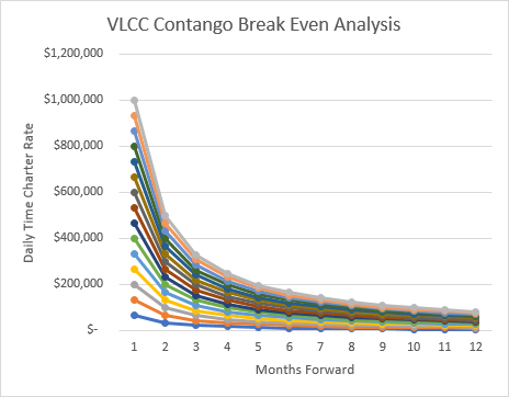 Il est évident que tout propriétaire/exploitant va exiger des taux conformes aux conditions actuelles du marché pour éliminer tout profit d’arbitrage présenté par le contango du marché. Par conséquent, tant que ces conditions de prix existent sur les marchés à terme du pétrole brut, les compagnies pétrolières devraient pouvoir exiger des taux élevés.