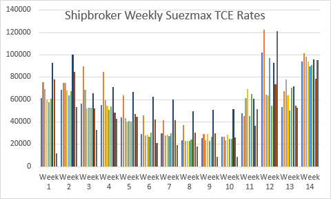 Pour les transporteurs Suezmax, nous trouvons :