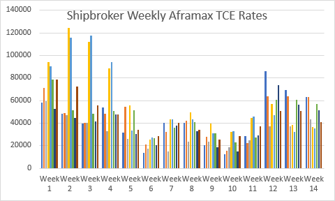Pour les transporteurs Aframax, nous trouvons :