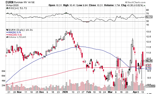 Euronav (EURN) exploite une flotte de VLCC et de pétroliers Suezmax en plus des anciens ULCC utilisés aujourd’hui comme stockage flottant. Un grand nombre de leurs navires sont exploités sur le marché spot.