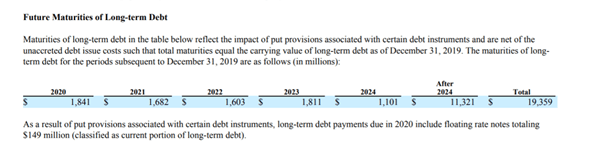 Et si l’on considère les prochaines années et les montants de la dette qui sont dus, la situation semble être contrôlable pour 3M Company. Le graphique ci-dessus est tiré des 10 derniers K et n’inclut pas les 1,75 milliards de dollars de dette que la société a contractés en mars 2020. En 2020, 1,2 milliard de dollars de dette arrivera à échéance – 700 millions sont dus en mai 2020 et 500 millions en août 2020 et les années suivantes, le montant se situera entre 1 et 2 milliards de dollars (à l’exception de 2021, où plus de 3 milliards de dollars sont dus l’année prochaine).