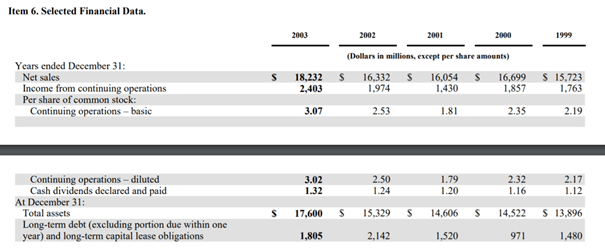 Si l’on considère la récession avant la crise financière, celle qui a suivi la bulle Dotcom en 2001 et 2002, les recettes sont passées de 16,7 milliards de dollars en 2000 à 16,1 milliards de dollars en 2001, soit une baisse de 3,9 %. En outre, le revenu net est passé de 1 857 millions de dollars en 2000 à 1 430 millions de dollars en 2001, soit une baisse de 23 %.