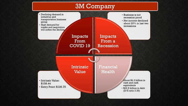 Dans l’introduction, j’ai écrit que les résultats et les données disponibles sur les revenus nous aideront à faire de meilleures hypothèses. Néanmoins, nous devons admettre que nous sommes toujours confrontés à un niveau élevé d’incertitude. Si les résultats du premier trimestre sont solides, la société 3M sera durement touchée par la COVID-19 ainsi que par la récession à venir (3M est une entreprise cyclique). La demande accrue de masques et de respirateurs atténuera le déclin, mais je m’attends toujours à ce que les bénéfices diminuent de la même manière que lors des deux dernières récessions.