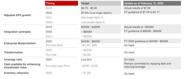 Le CVS prévoit que les recettes des prestations de santé en 2020 s’élèveront à 74 milliards de dollars, soit une hausse de 7 % par rapport à 2019, avec un résultat d’exploitation ajusté de 5,5 milliards de dollars (35 % de l’ensemble des revenus de l’entreprise), soit une hausse de 6 % par rapport à l’année précédente. Cela me semble quelque peu prudent compte tenu de la promesse de MA, mais même ainsi, il ne serait pas déraisonnable pour CVS de viser un revenu net de plus de 10 milliards de dollars en 2020 pour toutes ses divisions, étant donné les synergies d’intégration (estimées à long terme à 2,5 milliards de dollars) que la société réalisera, Aetna étant entièrement intégrée dans la structure globale de l’entreprise.