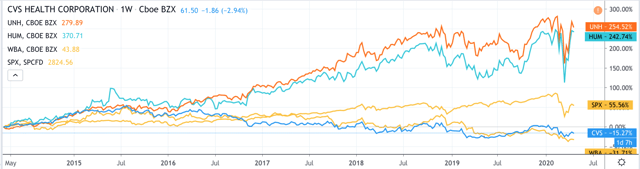 Même si CVS ne dépendait que de ses divisions de vente au détail et de pharmacie, je pense que l’entreprise représenterait toujours un achat en raison de son expertise, de sa position dominante sur le marché et de ses capacités de saisie de données, mais l’acquisition d’Aetna a ajouté une nouvelle dimension et fait de CVS une valeur de croissance attrayante opérant sur un marché à forte croissance et lucratif qui est parfaitement complémentaire des autres marchés sur lesquels elle opère.