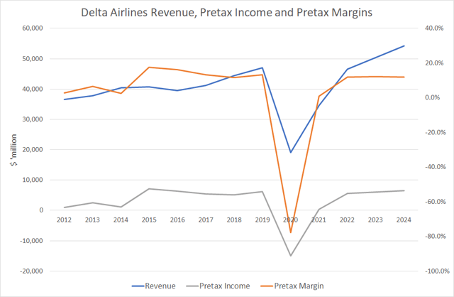 Nous avons donc une action qui peut effacer votre capital à hauteur de 60-100%, mais qui vous offre un rendement sur votre argent de 60-200%. Cela me dit que DAL est un commerce, pas un investissement.