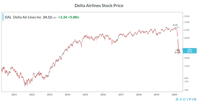 Après une forte hausse depuis 2012, le DAL a vu 60 % de sa valeur effacée depuis le début de 2020 en raison de la pandémie mondiale de Covid-19.