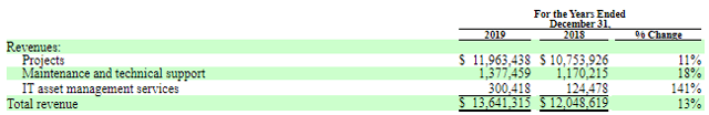 Il y a également une ligne au-dessus qui indique les services de gestion des actifs informatiques, avec des revenus en hausse de 141% l’année dernière (bien que de faible ampleur). A partir du 10 000 :