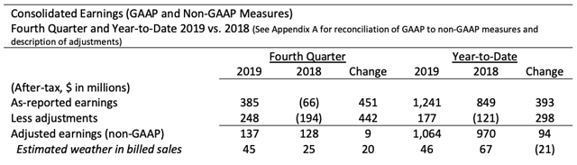 Entergy a réalisé un bon quatrième trimestre 2019, puisque la société a vu ses bénéfices ajustés augmenter de 9 millions de dollars pour atteindre 137 millions de dollars. Pour l’ensemble de l’année, ses bénéfices ajustés ont augmenté à 1,064 milliard de dollars, contre 970 millions de dollars en 2018. Cela représente un taux de croissance de 9,7 % d’une année sur l’autre.