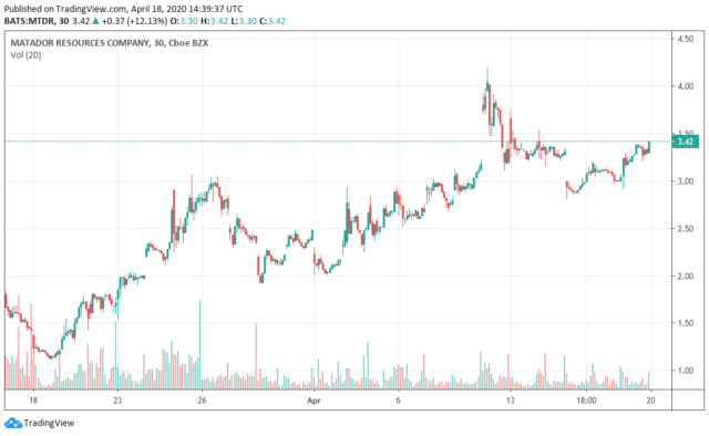 Matador Resources a dépassé les 4 dollars à la nouvelle que les Saoudiens et les Russes ont conclu un accord. Graphique généré par Trading View.
