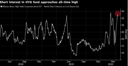 L’objectif de cet article est d’évaluer le FNB iShares iBoxx $ High Yield Corporate Bond (HYG) comme option d’investissement à son prix de marché actuel. Bien que je sois prudent sur HYG depuis un certain temps, mes perspectives sont devenues encore plus négatives à court terme. Je pense simplement qu’il s’agit d’un fonds que les investisseurs seraient bien avisés d’éviter, au moins jusqu’à ce que la crise COVID-19 se soit considérablement améliorée. Plus précisément, je m’attends à ce que les défauts de paiement sur les titres à haut rendement augmentent considérablement dans les mois à venir, car les entreprises sont confrontées à leurs obligations en matière de dette dans un contexte de baisse des revenus (et des bénéfices). En outre, les paris baissiers sur le secteur n’ont cessé d’augmenter, atteignant un niveau jamais vu depuis la fin février. À l’époque, HYG a fortement chuté, je serais donc prudent de prévoir un résultat similaire maintenant. Enfin, la Fed a étendu son soutien au-delà des dettes d’entreprises de qualité. Toutefois, ce soutien a jusqu’à présent été limité principalement aux « fallen angels », qui sont des obligations récemment déclassées de la catégorie investissement. La portée limitée de cette expansion limitera les gains potentiels d’un fonds large comme HYG.