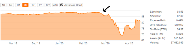 J’en déduis que les nouvelles sur le marché des obligations d’entreprises à haut rendement ont une tendance négative en ce moment. Bien que cela crée une opportunité, je crois que le pire est encore à venir. Avec les faillites qui commencent à peine, les vents contraires pour des fonds comme HYG sont importants. Alors que les marchés du crédit pourraient se redresser avec le soutien de la Fed et une amélioration de la lutte contre COVID-19, les agences de notation ne sont pas aussi optimistes. En fait, Fitch Ratings a publié un rapport la semaine dernière, déclarant qu’elle s’attend à ce que le taux de défaut de paiement des fonds américains à haut rendement dépasse les 4 % d’ici la fin avril. Cela marquerait le plus haut niveau de défauts en plus de trois ans et représente une augmentation de plus de 1% depuis la fin du mois de mars. Si cette estimation se concrétise et s’aggrave encore à l’avenir, il sera difficile de voir HYG enregistrer des rendements positifs dans les mois à venir.