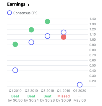 IAC a été constamment rentable au cours des quatre derniers trimestres, et la société fera rapport sur le BPA du premier trimestre 2020 le 6 mai.