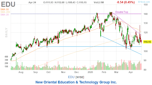 Début février, nous avons écrit un article élogieux sur le leader du marché chinois de l’éducation à but lucratif, le New Oriental, et c’est effectivement le cas. Même la pandémie Covid-19 et les fermetures d’écoles qui en ont résulté ne semblent pas pouvoir la ralentir, même si le cours de l’action a pris un coup depuis lors :