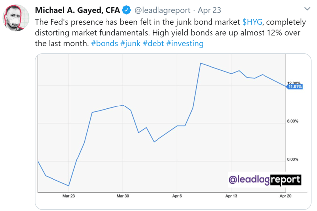 Il serait logique que la Fed considère ce passif comme un risque accru d’effondrement économique, les passifs non financés causant déjà des problèmes même avec une hypothèse de rendement élevé. Sans parler d’une population vieillissante dont les besoins augmentent, et qui vit plus longtemps que lorsque ces pensions ont été créées. Nous avons maintenant une tendance déflationniste massive avec la coronavirus et le craquement des prix du pétrole, ainsi que la plus importante chute de récession de notre temps. Il n’est pas étonnant que chaque fois que le marché boursier a plongé ces dernières années La Fed est venue à la rescousse sous une forme ou une autre. N’oubliez pas qu’elle a tenté de relever les taux et de resserrer la politique monétaire en 2018 pour tenter de prendre de l’avance. Mais les marchés boursiers ont chuté de 15 % en décembre, et la position de la Fed a changé radicalement. Et parce qu’elle n’a pas tenu bon, maintenant que nous sommes dans une véritable crise, elle doit procéder à des injections inhabituelles, voire nécessaires, de liquidités dans des endroits comme les obligations à haut rendement.
