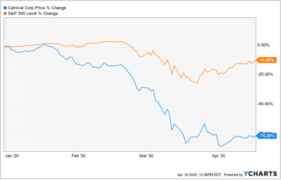 Le cours de l’action de Carnival a plongé à son plus bas niveau en 20 ans, effaçant tous les rendements des actionnaires depuis 2000. Alors que le S&P 500 a chuté de 11 %, Carnival a perdu plus de 75 % de sa valeur en bourse.