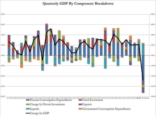 Notez que le premier trimestre n’inclut qu’un mois de l’impact de la pandémie COVID-19 sur le PIB américain. Les chiffres du deuxième trimestre, tous soumis à l’assaut de la pandémie, devraient être nettement plus mauvais.