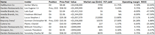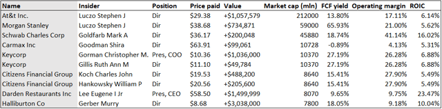 Ensuite, je fournirai une liste des achats d’initiés les plus importants en valeur (la plupart d’entre eux sont déjà mentionnés dans la liste précédente) :