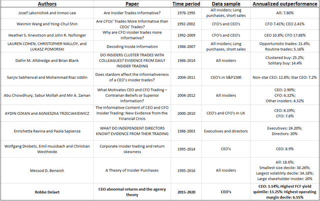 Le S&P 500 est resté stable cette semaine, les investisseurs essayant toujours d’évaluer l’impact de la crise COVID-19 et des stimuli de la Fed sur l’économie. Comme je l’ai écrit dans mon récent article, je pense que l’économie sera touchée bien plus longtemps que les prix du marché à l’heure actuelle. Toutefois, je pense qu’il pourrait être intéressant de commencer à mettre prudemment une partie de vos liquidités à profit dans ce marché imprévisible. Suivre les achats d’initiés pourrait être une stratégie intéressante et très rentable, comme le prouvent de nombreuses publications universitaires (voir liste ci-dessous). En fait, mes propres recherches universitaires ont montré des rendements anormaux annuels allant jusqu’à 13,25 %. Comme chaque semaine, je vous fournirai deux listes d’achats d’initiés classées selon la capitalisation boursière et la valeur achetée, et je discuterai brièvement de ces actions. En outre, je fournirai une analyse approfondie de mon choix hebdomadaire préféré. De cette façon, je pense que je fournis aux lecteurs une valeur significative pour créer un portefeuille solide.