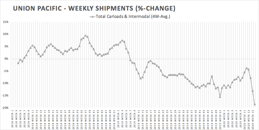 L’Union Pacifique a fait un excellent travail au cours de son deuxième trimestre. La société a utilisé un ratio d’exploitation plus faible et des rachats d’actions pour compenser une baisse des ventes de 3 %. De plus, la direction maintient un flux de trésorerie sain et un ratio d’endettement durable. Le seul problème que je constate actuellement est que le titre est en hausse de 45 % par rapport à ses plus bas niveaux. Bien sûr, les plus bas de mars ont été très sur-vendus et un rebond était prévu. Cependant, en ce moment même, nous assistons à une nouvelle diminution de la misère économique alors que les expéditions chutent comme un roc. En outre, il est peu probable que la croissance économique reprenne bientôt, car le verrouillage mondial continuera à peser sur le sentiment.